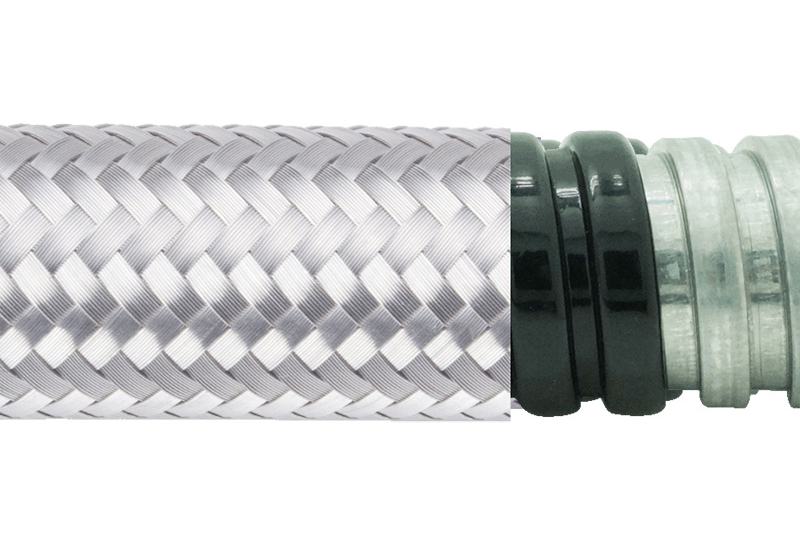 電氣保護金屬軟管 (EMI 防護) - PEG13PVCSB 系列, 由鍍鋅鋼單勾軟管外加聚氯乙烯 (PVC) 塑料防水層及不銹鋼絲編織網構成, 是 EMI 防護系列產品中保護等級再提升的設計, 尺寸系統迎合歐洲市場普遍使用的規格。全系列產品具備優良的機械特性及防水防塵性, 編織層額外提升耐磨性, 在可能存有電磁干擾問題的環境中, 提供基本的 EMI 防護功能。聚氯乙烯塑料護套同時具有阻燃性, 本系列金屬軟管亦屬于低火險型的產品。全部材質符合 RoHS--危害物質禁用指令, 滿足環保產品要求。